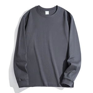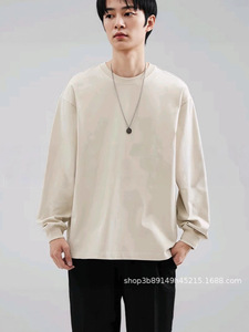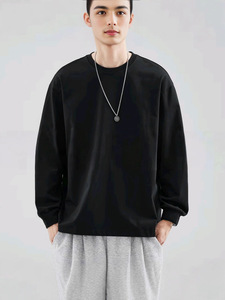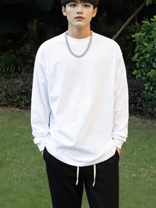 360G重磅长袖t恤男纯棉厚实宽松纯色白色T春秋上衣日系圆领打底衫
