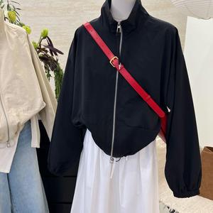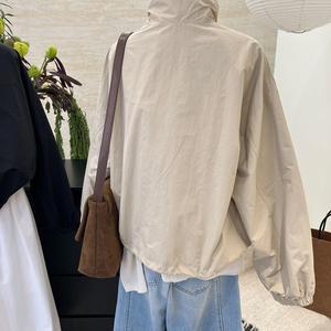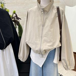 小个子韩系立领纯色休闲百搭短款外套女宽松极简洋气抽绳薄款夹克