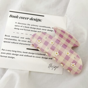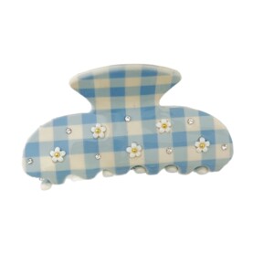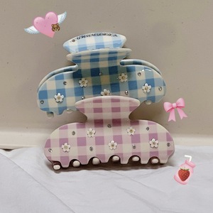新款春夏点钻粉蓝格子醋酸花朵抓夹甜美高马尾发夹ins发饰鲨鱼夹