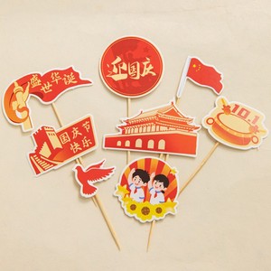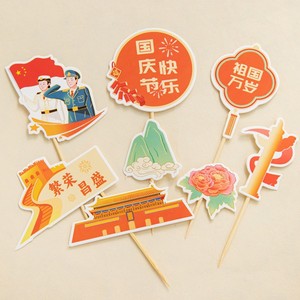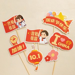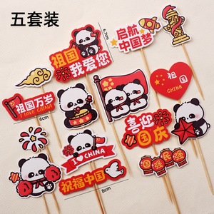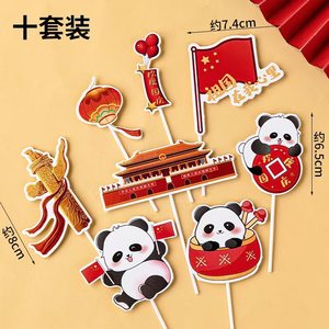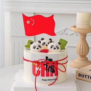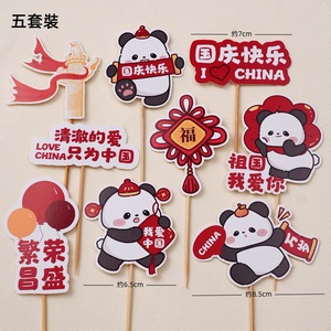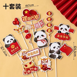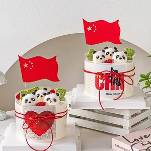 2025国庆节蛋糕装饰熊猫棉花糖10.1节日快乐小旗饼干烘焙装扮插件