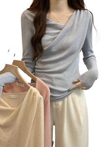 法式别致荡领扭褶斜领显瘦长袖针织衫女初秋温柔风韩系设计感上衣