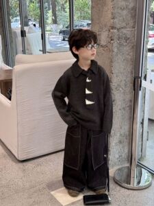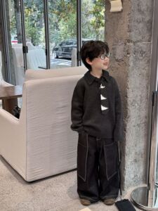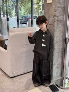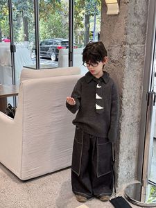 泰如2025秋季新款韩系毛衣针织polo领慵懒简约上衣儿童软糯舒服
