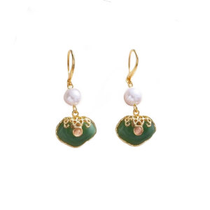 复古新中式长命锁耳环小众气质简约国风耳坠时尚百搭民族风耳饰女