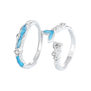 蒂奇亚原创余生有你情侣戒指S925纯银小众轻奢高级感珐琅鱼尾对戒