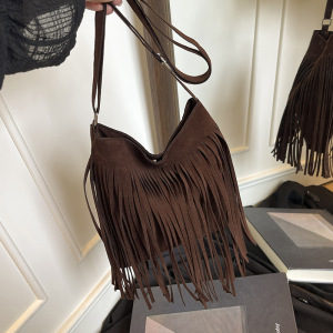 小众设计包包女秋季2025新款潮时尚磨砂单肩斜挎包质感流苏水桶包