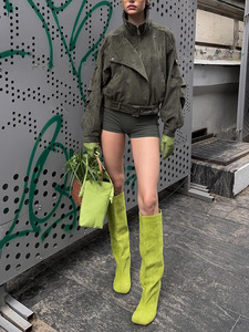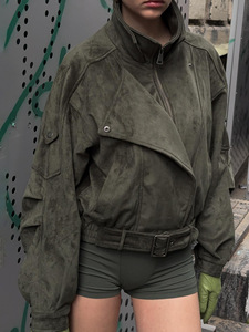跨境复古仿麂皮外套女宽松廓形立领夹克小众设计感复古工装风上衣