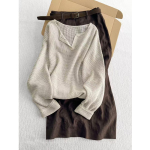 2025年超火早秋一整套小香风轻熟小众不撞款针织上衣两件套裙装女