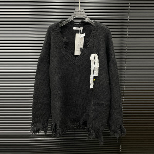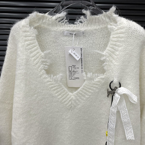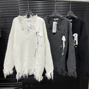 2025年早秋新款小众破洞不规则韩系时尚别针装饰宽松长袖针织上衣
