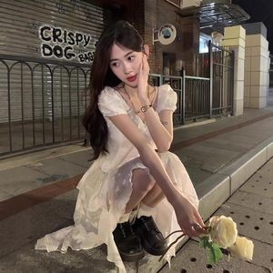 法式茶歇初恋白色连衣裙子女夏季超仙海边度假小个子不规则公主裙