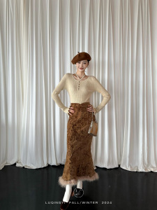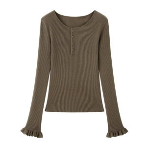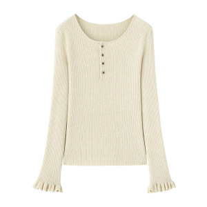鹭青一原创【亿朵】48支包芯纱针织衫女春秋法式设计感坑条打底衫