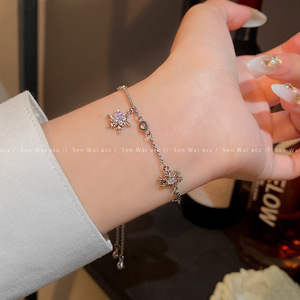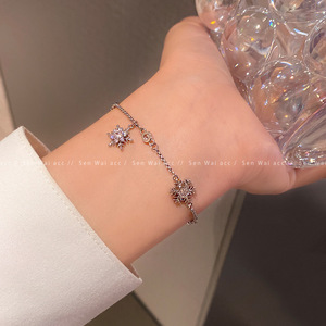 银色微镶锆石雪花手链女时尚简约百搭气质手串轻奢小众高级感手饰