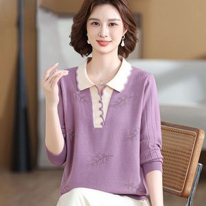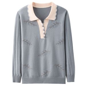 妈妈秋装新款洋气针织打底衫2025中老年女装春秋翻领长袖毛衣套装