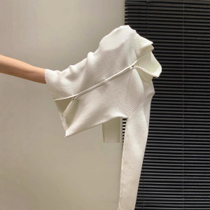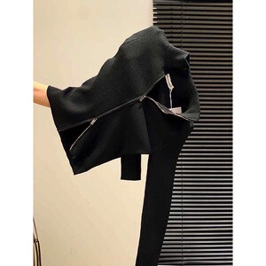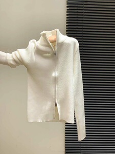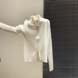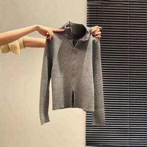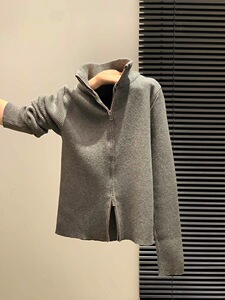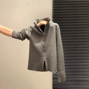 高级感灰色立领双拉链针织开衫外套女秋冬半高领修身短款打底毛衣