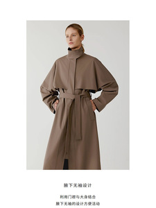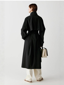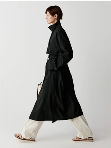 禾家立领收腰单排扣长款风衣女秋季新款个性不规则装饰拼接长外套