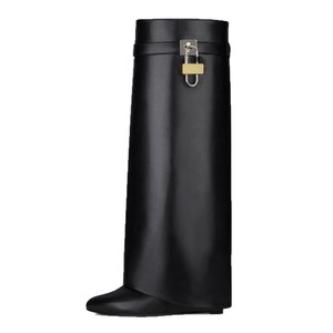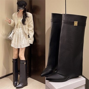复古百搭靴子女长靴虞书欣同款高筒靴高跟靴子裤管靴尖头骑士靴女