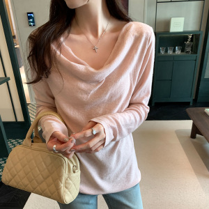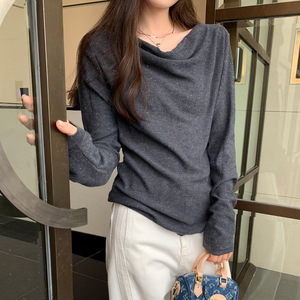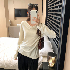 实拍 韩里韩气一字肩荡领长袖t恤女2025秋季新款休闲慵懒风小上衣