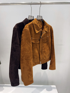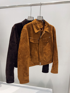 高品质老钱风复古真皮皮衣2025新款山羊皮反绒机车短款皮夹克外套