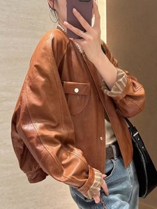 【矜贵折纸】欧货油蜡100%绵羊皮真皮皮衣女款女休闲宽松轻奢外套