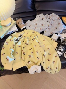 男女童卫衣套装春秋季新款儿童满印米奇宝宝休闲运动卫裤两件套