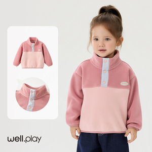 威尔贝鲁看儿童卫衣2025秋冬上衣可爱撞色百搭卫衣保暖休闲风