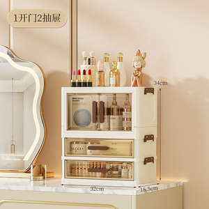 化妆品收纳盒梳妆台轻奢高级感双开门桌面置物架ins抽屉式收纳柜