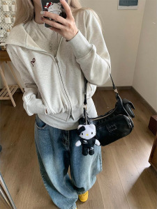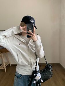 春秋季2025新款双拉链连帽卫衣女韩版宽松薄款小个子短款外套上衣