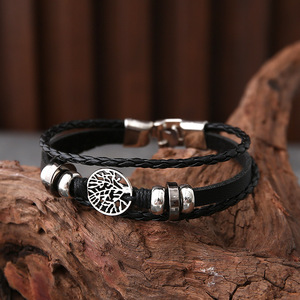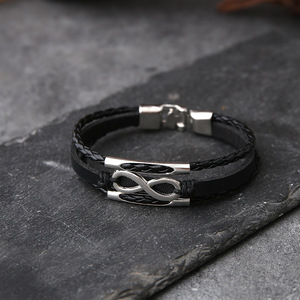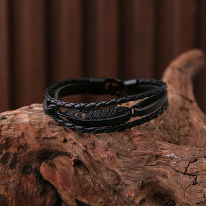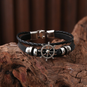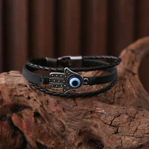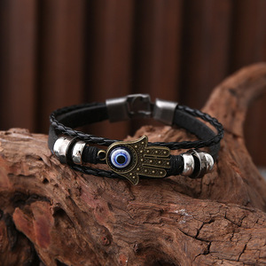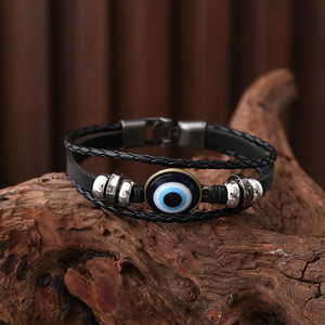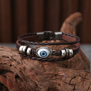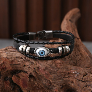 跨境热销穿珠猫眼手链皮手链编织手链皮质编织串珠饰品多层手链