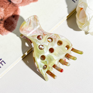 亚马逊热销草莓发夹女高级感大理石纹马尾夹后脑勺盘发固定发卡