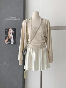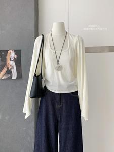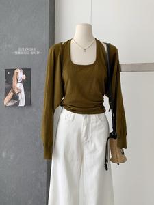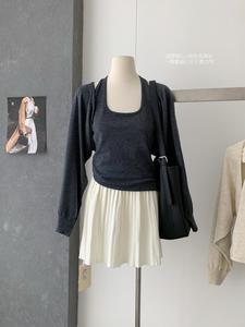 2025年早秋新款韩版时尚简约纯色百搭短款针织开衫+内搭挂脖背心