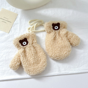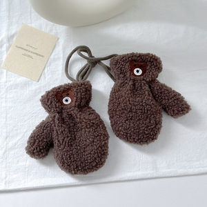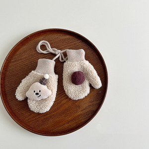 ins韩国可爱小熊儿童手套秋冬季男女童保暖围脖加绒脖套保暖手套