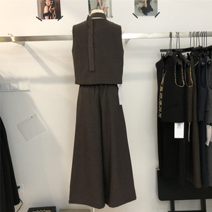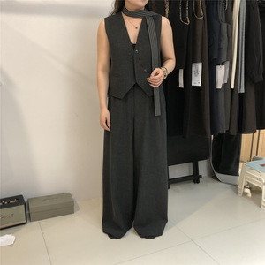 老钱风V领单排扣马甲+阔腿裤套装女2025秋季新款韩系通勤AQL8806