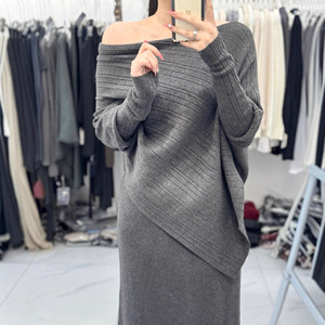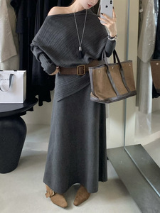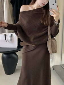 蝙蝠袖露肩针织上衣+半身裙套装女2025新款时尚气质设计感两件套