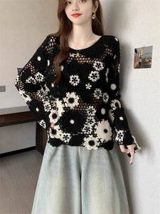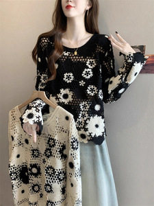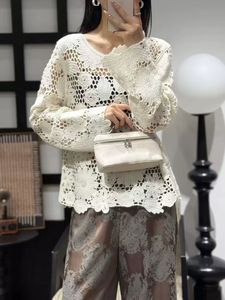 法式镂空钩花长袖防晒针织罩衫早秋款白色女装复古设计感外穿上衣