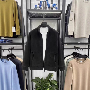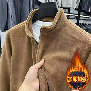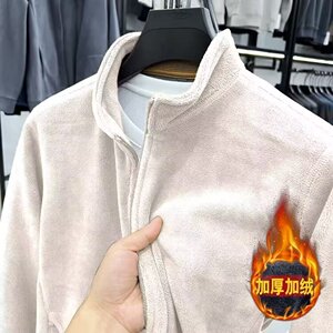 高档秋冬季奥粒绒外套男立领拉链开衫男装加厚保暖摇粒绒纯色夹克