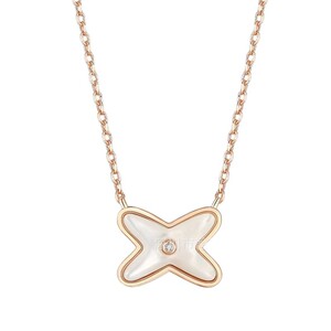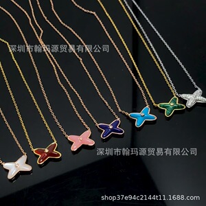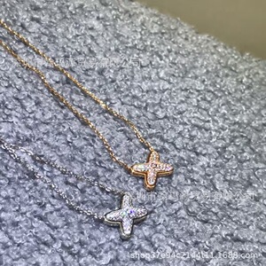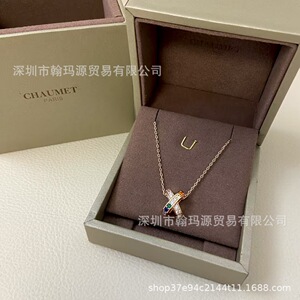 新款高版本贝母交叉项链满钻小众设计时尚个性彩色吊坠X字锁骨链