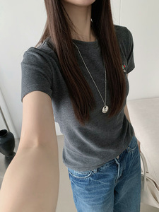 THINK十三行韩系腊肠狗磨毛T恤女2025秋圆领百搭休闲正肩百搭上衣