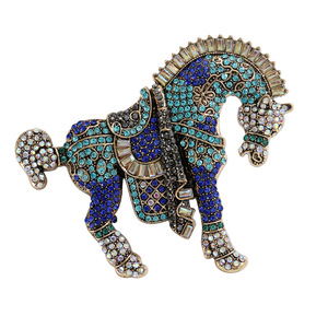高档重工满钻马胸针欧美时尚复古百搭生肖马胸花别针男女高级配饰