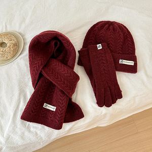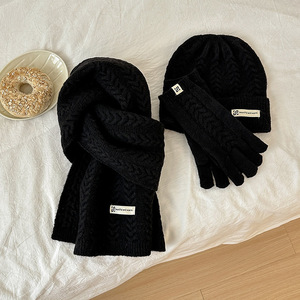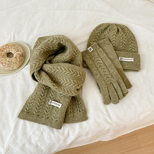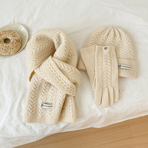八字麻花三件套针织围巾手套帽子冬季保暖礼品圣诞结大衣百搭套装