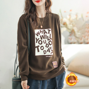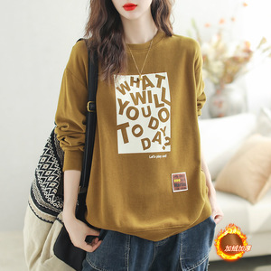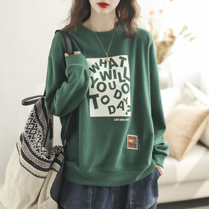 纯棉长袖卫衣女春秋季新款宽松遮肚显瘦百搭T恤打底衫韩版上衣潮