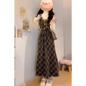 小香学院风格子背带连衣裙子女秋冬季2025新款小个子穿搭套装长裙