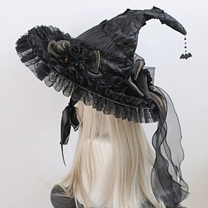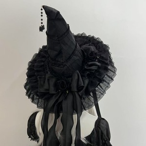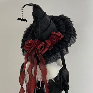 恶魔lolita蝴蝶结cos装扮i哥特暗黑系辣妹万圣节女巫帽头饰魔女帽