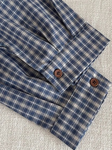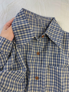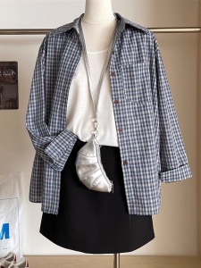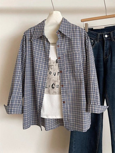 跨境格子衬衫外套女早秋春夏季复古法式上衣休闲长袖格纹防晒衬衣
