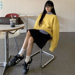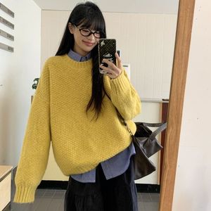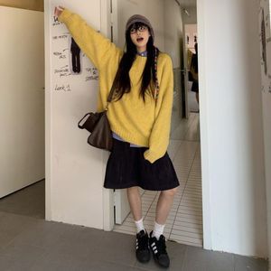 学院风时尚套装女韩系慵懒套头毛衣秋冬加厚针织衫百搭衬衫两件套