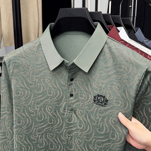 秋季新款长袖polo衫男士中年商务休闲爸爸装翻领印花t恤男打底
