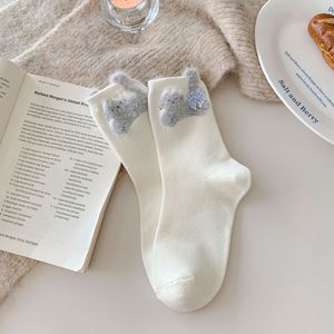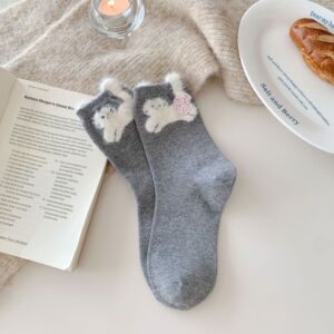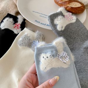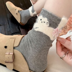 秋冬可爱卡通立体毛绒小猫中筒女袜韩版甜美少女格子蝴蝶结堆堆袜