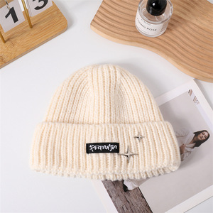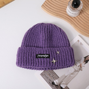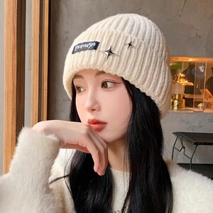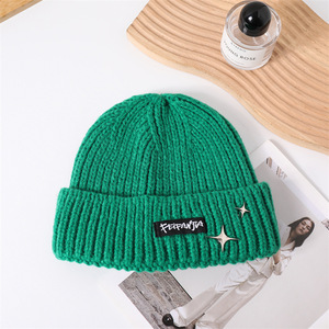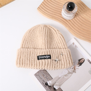新款针织帽大头围韩版时尚星星标防风毛线帽女秋冬纯色保暖冷帽男