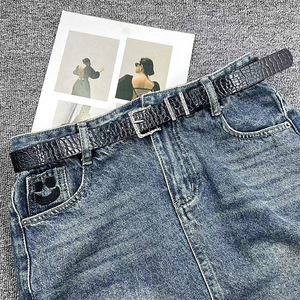 小众设计感新款潮流意大利褶皱古银皮复古金属环扣腰带皮带