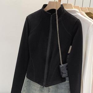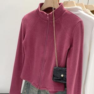 立领短款加绒拉链开衫外套女2025春季新款小个子修身德绒正肩上衣