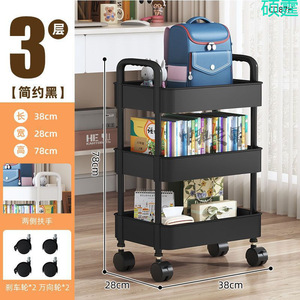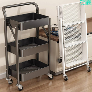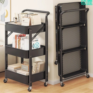 新款碳钢小推车折叠多层储物架置物架可移动厨房卧室零食收纳推车