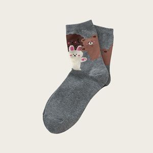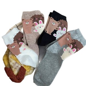 全棉袜子女秋冬中筒袜韩版卡通可爱潮流堆堆袜纯棉透气吸汗棉袜子